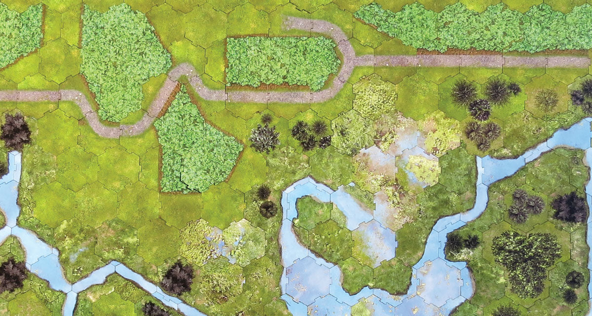 Mega Tiles allow the beauty of the Terrain Tiles to be set up in a fraction of the time! Each Mega tile is the size of 7 regular tiles! Some Mega Tiles have features to make your board feel more alive. All Mega Tiles are compatible with the regular Tile sets, Boarders and Corners, and Hills.