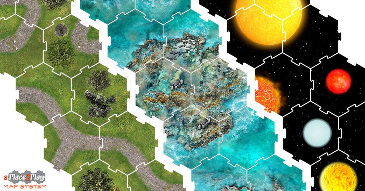 Invent your own island getaway with the Sea Series Terrain Tiles. With both the unknown depths of the ocean, and the colorful shallow reefs, discover the beauty in the aPlace2Play Sea series by creating stunning displays of your aquatic board.