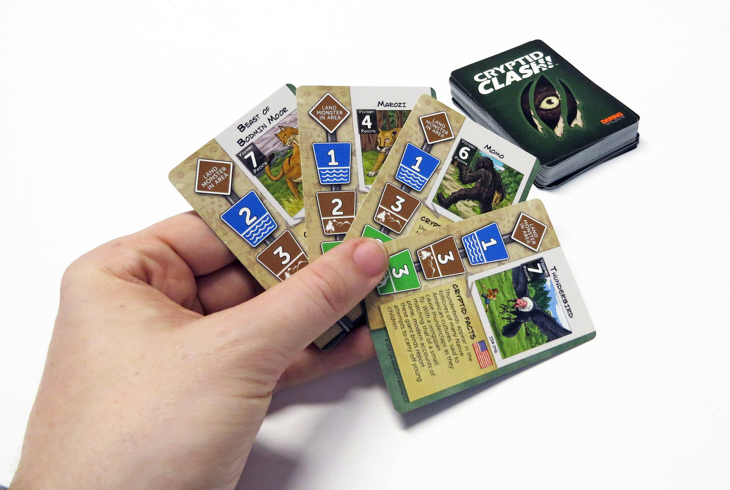 Cryptid Clash is a fun, fast, two player card game with epic scale! The world's collection of Cryptids are out for each other. Each card features unique art and facts for each Cryptid. From Mothman to Bigfoot, Sasquatch and The Loch Ness Monster: take your team of legendary monsters to victory in Cryptid Clash.